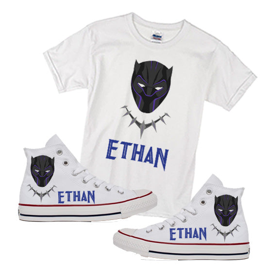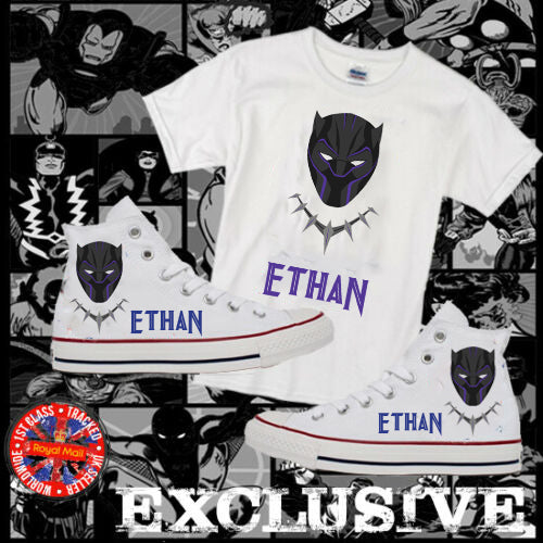 Black Panther Personalised Kids Converse All Star Hi Tops & Matching T-shirt