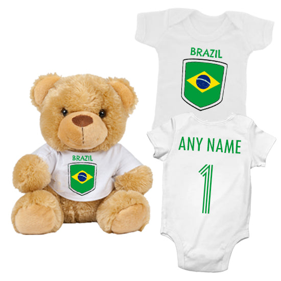 Brazil Personalised Matching Teddy Bear & Bodysuit