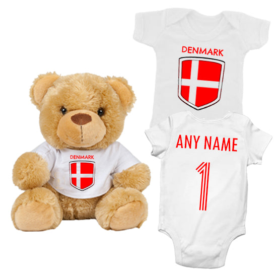 Denmark Personalised Matching Teddy Bear & Bodysuit