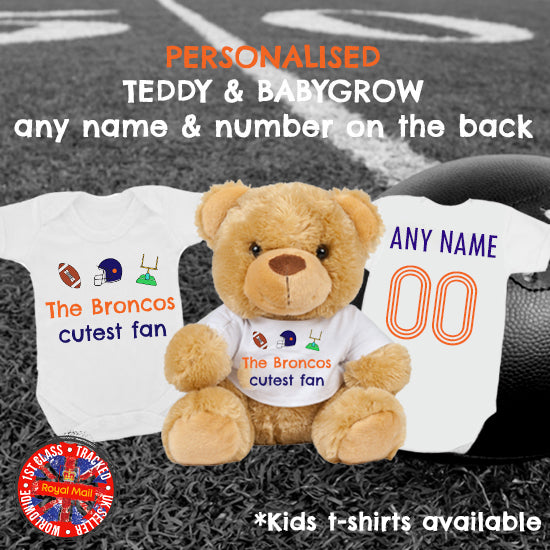 Broncos Cutest Fan Personalised Matching Teddy Bear & Bodysuit