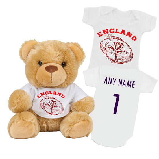England Rugby Personalised Matching Teddy Bear & Bodysuit