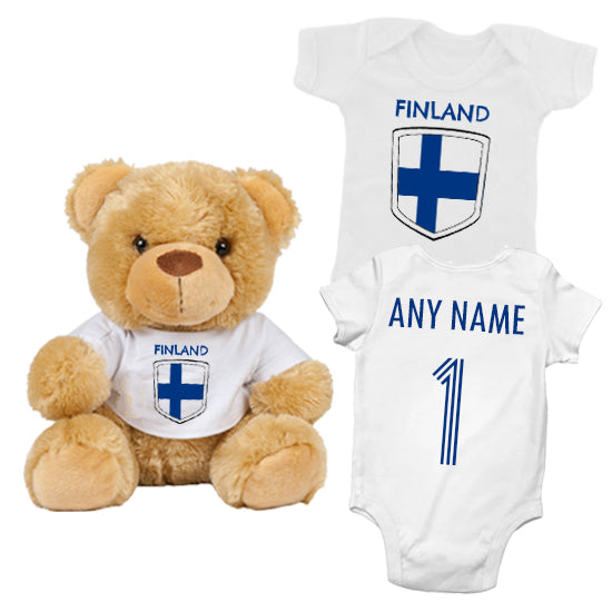 Finland Personalised Matching Teddy Bear & Bodysuit