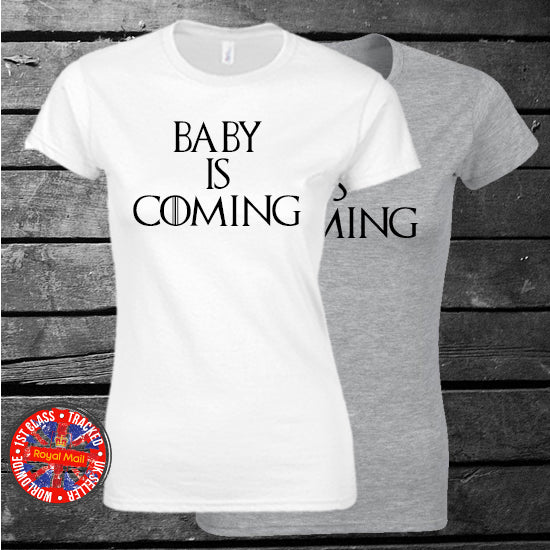 For Game of Thrones fans is our "Baby is Coming" t-shirt to celebrate the wonderful gift of pregnancy.
