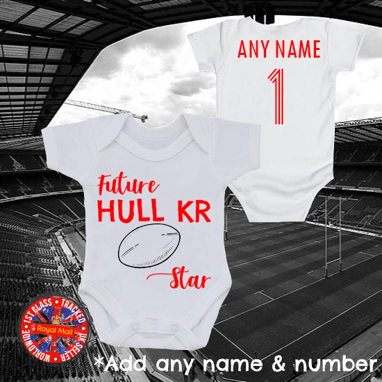 You can personalise your order by stating at checkout which name and number you would like printed on the back of the babygrow.