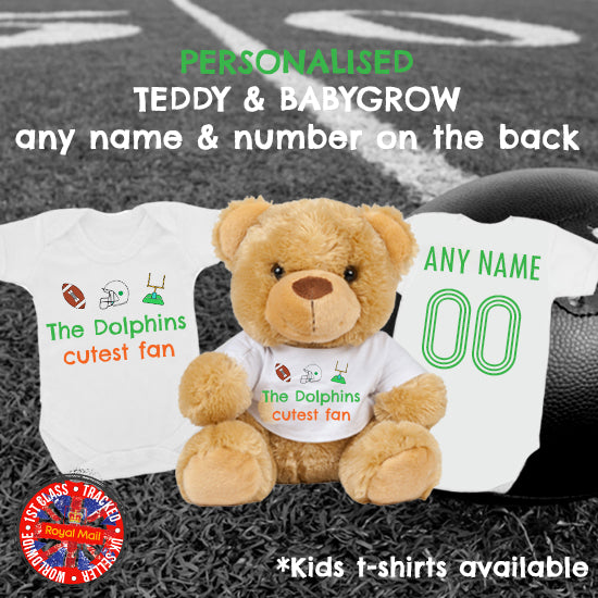 Dolphins Cutest Fan Personalised Matching Teddy Bear & Bodysuit