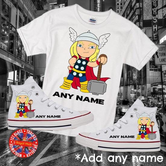 Mini Thor Personalised Kids Converse All Star Hi Tops & Matching T-shirt