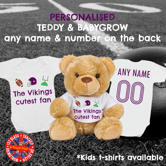 Vikings Cutest Fan Personalised Matching Teddy Bear & Bodysuit