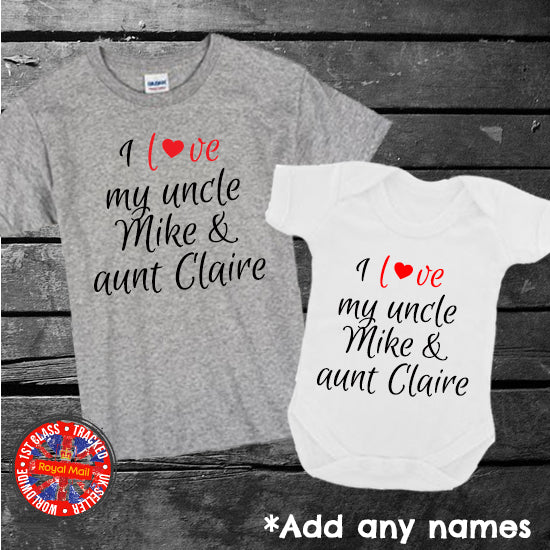 Personalised I Love My Uncle & Aunt Bodysuit T-shirt