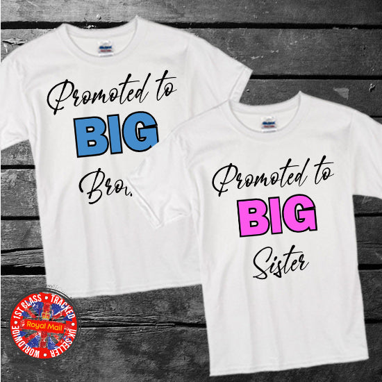Celebrating the great news that there will soon be a new arrival into the family with our Promoted to BIG Brother / Sister t-shirts. Great for announcements and photos.