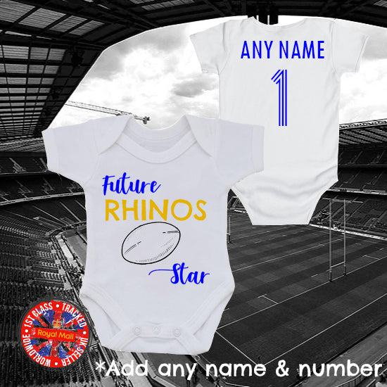 You can personalise your order by stating at checkout which name and number you would like printed on the back of the babygrow.