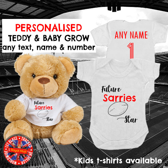 Future Sarries Star Personalised Matching Teddy Bear & Bodysuit