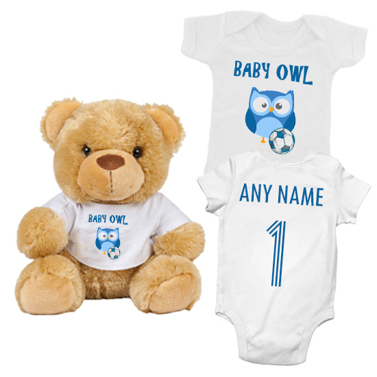Baby Owl Personalised Matching Teddy Bear & Bodysuit
