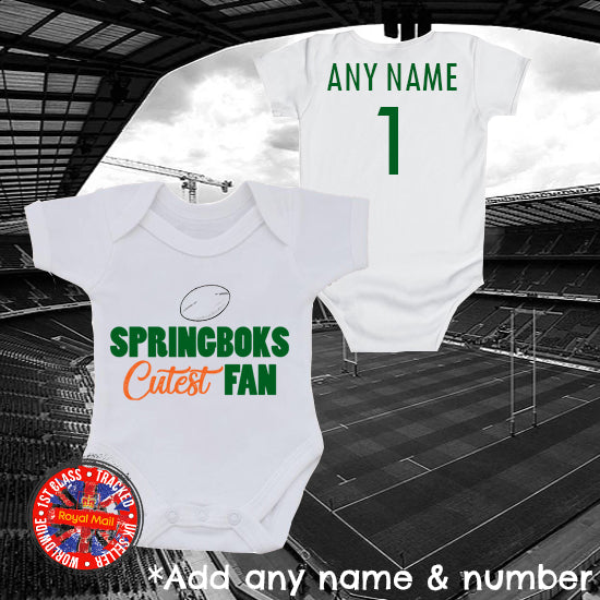 Springboks Cutest Fan South Africa Personalised Rugby Bodysuit