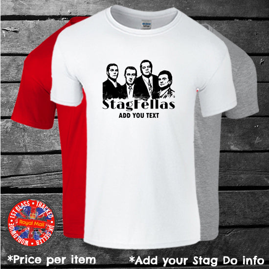 You can personalise your t-shirts with your stag do info on the front of the t-shirts by messaging or leaving a note to seller.