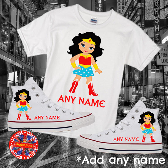 Wonder Girl Personalised Kids Converse All Star Hi Tops & Matching T-shirt